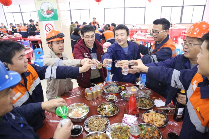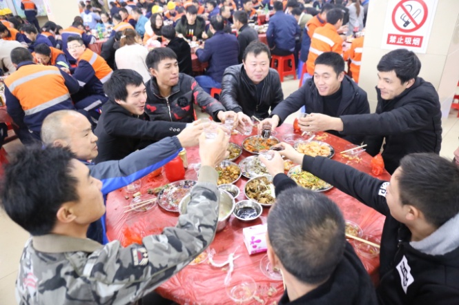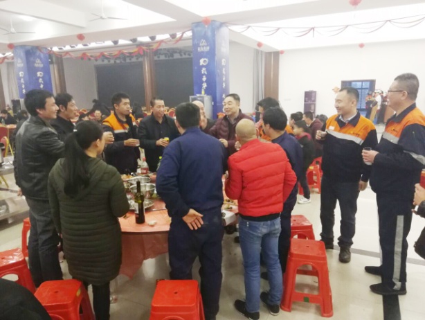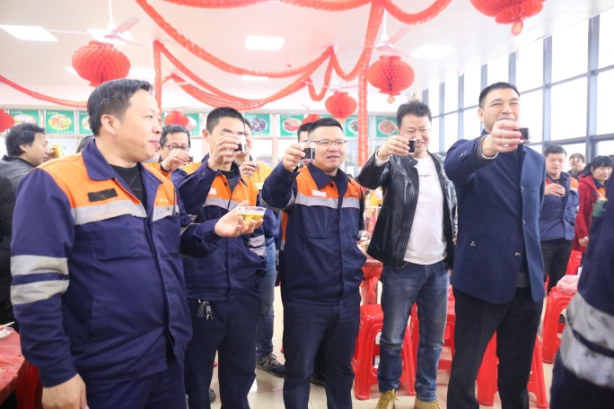大家举杯畅饮丰收美酒,欢声笑语共庆除夕。席间,青拓集团行政总经理钟盛江及各子公司领导与员工碰杯祝福新年,丰盛而热气腾腾的年夜饭,让员工感受到家的温暖,增强了员工的归属感、幸福感。