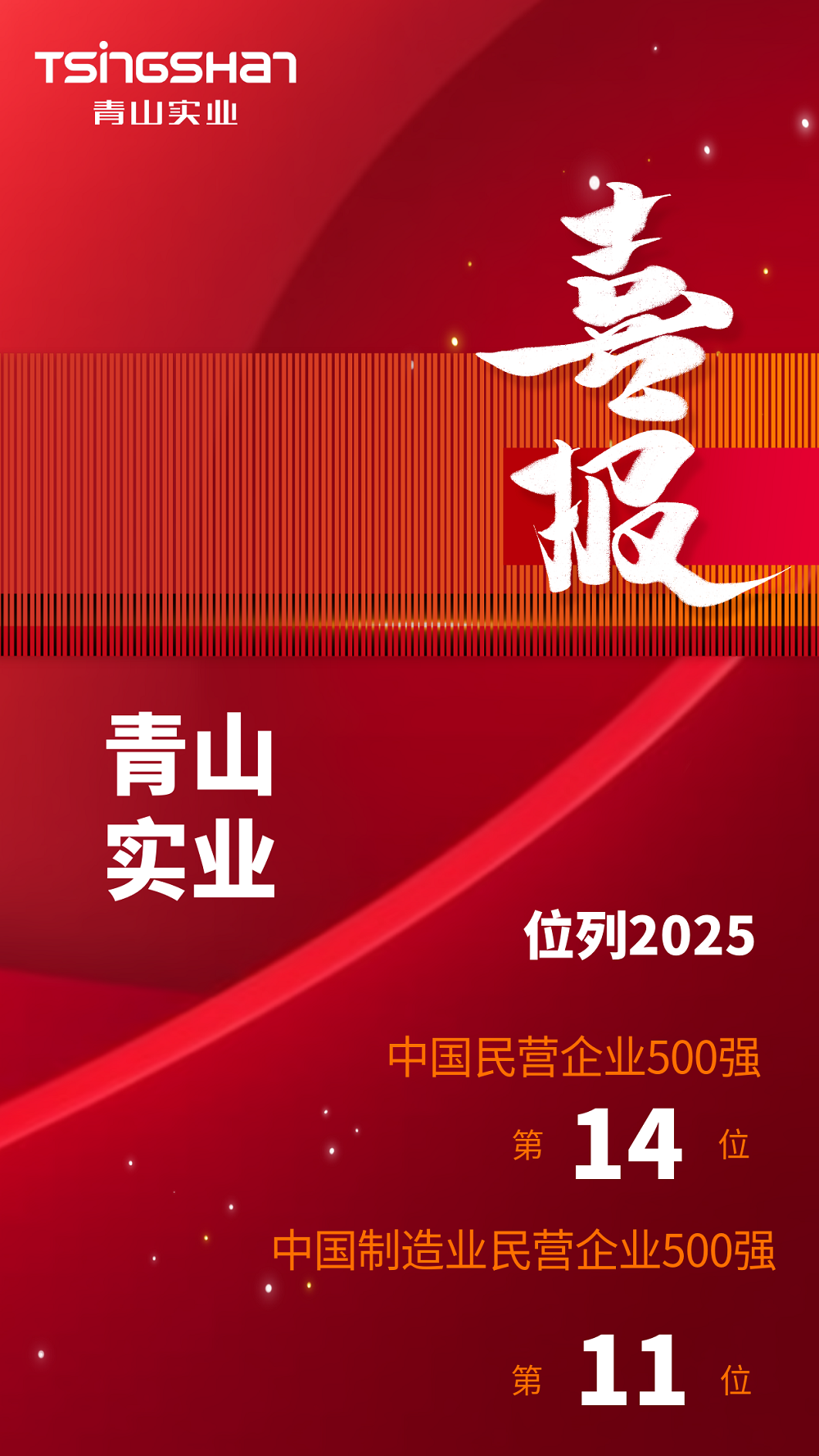 喜报丨AG贵宾会实业位列2025中国民营企业500强第14位、中国制造业民营企业500强第11位