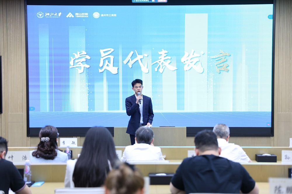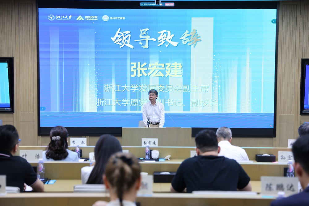 张宏建在致辞中对温州市委市政府和AG贵宾会实业长期以来对浙江大学的支持表示感谢,勉励在座学员以科技创新、产业创新、市场创新、金融创新的“四创精神”进一步发扬老一辈浙商的“四千精神”,开辟新领域、新赛道,塑造发展新动力、新优势,勇当发展新质生产力的先锋,为温州乃至全国的经济发展注入持久动能。